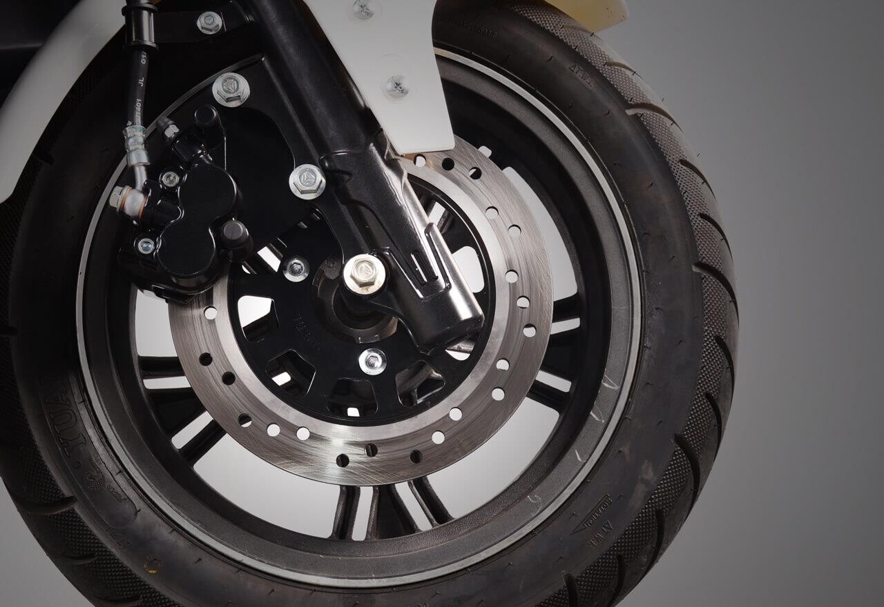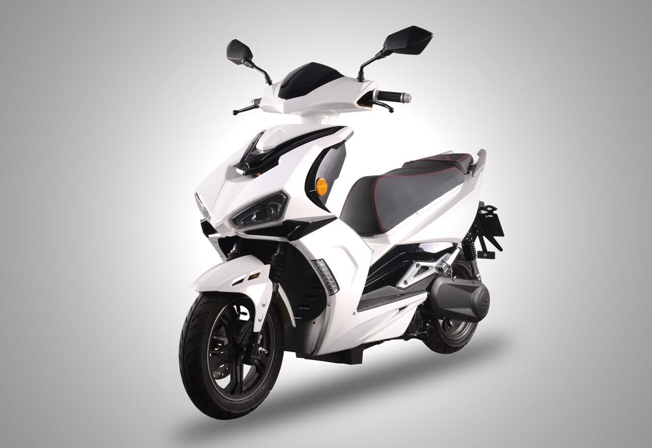 The scooter has a 40 Ah Lithium battery for a driving range of 100 km.